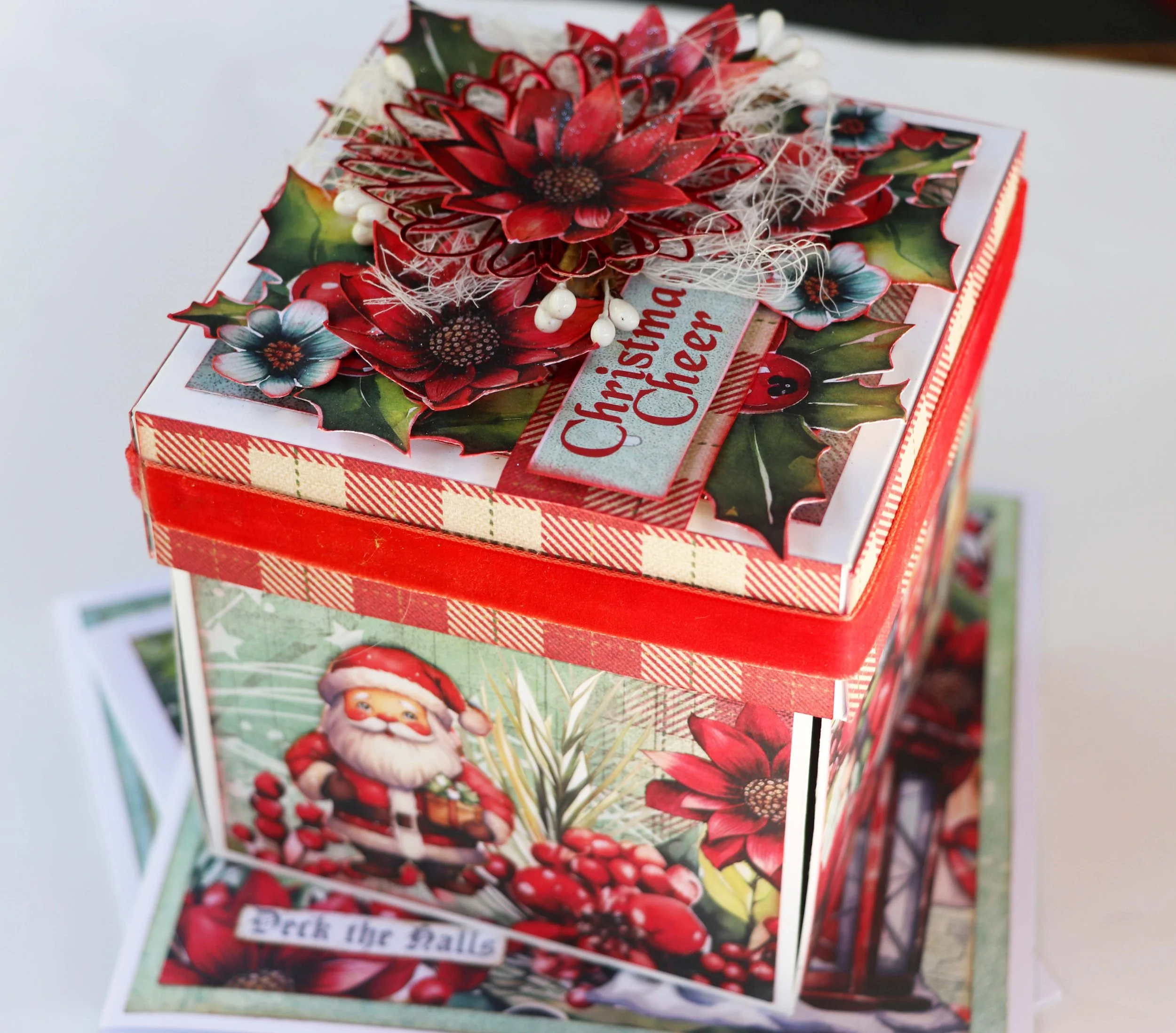 Get ahead of your Christmas decorating and join us to create this charming explosion box as a gorgeous keepsake or gift. We use the entire pack of Christmas Cheer designed by Sue Smyth for Bee Arty to decorate our precut explosion box base, with some left over for extra cards, lots of fussy cutting, inking and fun to be had in this class. We have even done some of the tedious fussy cutting for you but depending on time you may have to finish at home. We have also included some suggested designs for cards to make with the leftovers.